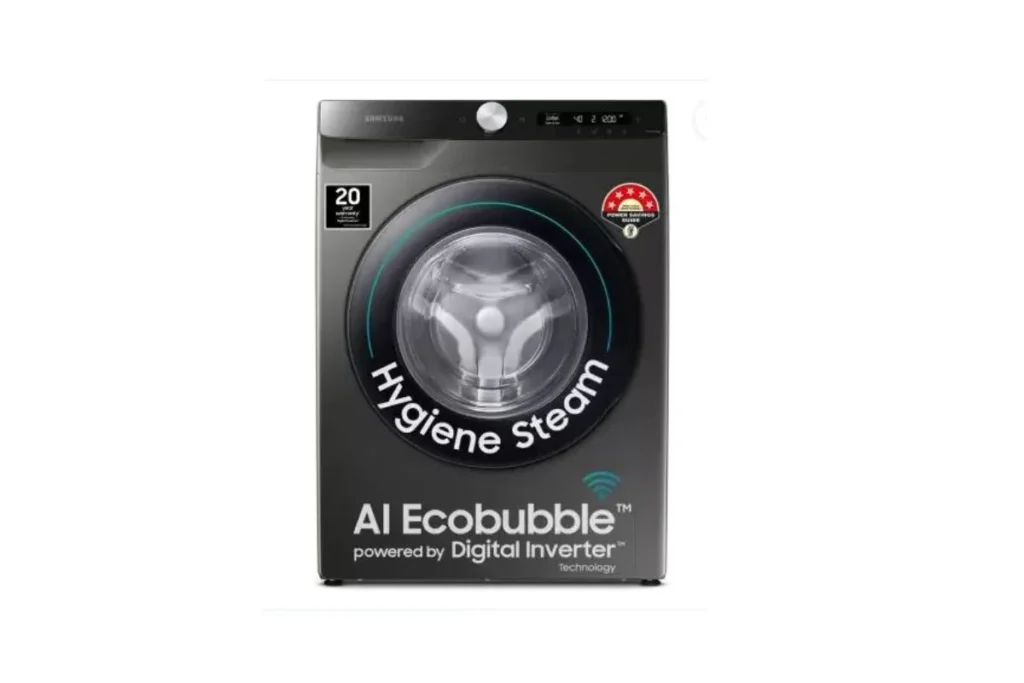 सैमसंग की ये 8 किलो की पूरी तरह से स्वचालित फ्रंट-लोड वॉशिंग मशीन है। इससे 4 या 5 लोगों के कपड़े आराम से धुले जा सकते हैं। ये वॉशिंग मशीन गंदे से गंदे धब्बों को छुड़ा देती है। इसकी खासियत पर नजर डालें तो ये इको बबल तकनीक, AI कंट्रोल वॉशिंग, स्टीम वॉशिंग जैसी खूबियों से लैस है।इसकी इको बबल तकनीक बुलबुले का यूज करती है और कपड़ों में तेज़ी से घुसकर गंदगी और जिद्दी दागों को हटाती है। इस वॉशिंग मशीन का शक्तिशाली स्टीम वॉश साइकिल आपके कपड़ों से कीटाणुओं और जिद्दी गंदगी को हटाने में मदद करती है।