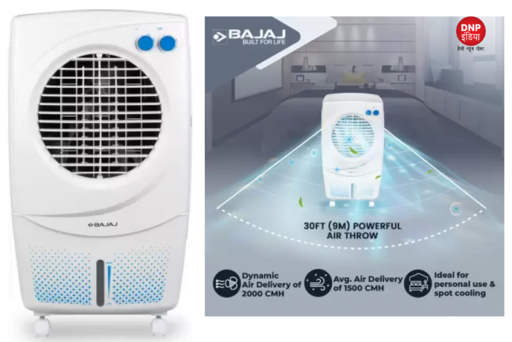 BAJAJ 36L Air Cooler: गर्मियां बढ़ने पर कई लोग कम बजट में किसी एयर कूलर को खरीदने का प्लान रहे हैं, तो ऐसे ग्राहक ई-कॉमर्स वेबसाइट Flipkart पर जाकर इसका फायदा उठा सकते हैं। दरअसल Flipkart पर BAJAJ कंपनी ये 36 लीटर की वॉटर कैपेसिटी के साथ आने वाले Air Cooler काफी कम कीमत में मिल रहा है। इस कूलर पर 35 फीसदी की छूट दी जा रही है। इसके साथ की तरह के डिस्काउंट ऑफर भी इस पर दिए जा रहे हैं। ये एयर कूलर Flipkart पर BAJAJ 36 L Room/Personal Air Cooler (White, Platini Coolest – Torque PX 97) के नाम से लिस्टेड है। ये एयर कूलर 150 स्क्वायर फीट के एरिया में आसानी से ठंड़ी हवा फैंकता है। तो आइए इस एयर कूलर सभी स्पेसिफिकेशन के बारे में जानते हैं।