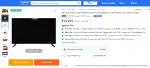 Flipkart पर 32इंच का यह स्मार्ट टीवी 24999 रुपये की कीमत पर लिस्टेड है और मिल रही 44 फीसदी यानी 10999 रुपये की छूट पर यह टीवी 13999 रुपये में बिक्री के लिए उपलब्ध है। इसके अलावा इस स्मार्ट टीवी के दो और बड़े स्क्रीन साइज वाले वेरिएंट भी उपलब्ध हैं लेकिन हम आपको इस 32इंच के स्मार्ट टीवी के बारे में बताने वाले हैं जिसे आप 350 रुपये में खरीद सकते हैं।