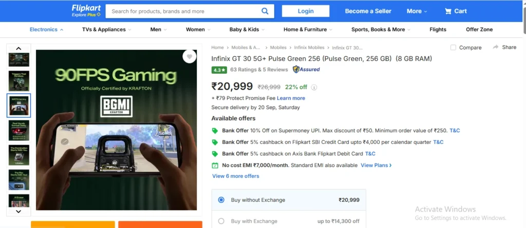 फ्लिपकार्ट सेल में इनफिनिक्स जीटी 30 स्मार्टफोन पर मिल रहा ये ऑफर सीमित समय के लिए है। जिसे कंपनी के द्वारा कभी भी बदला जा सकता है।