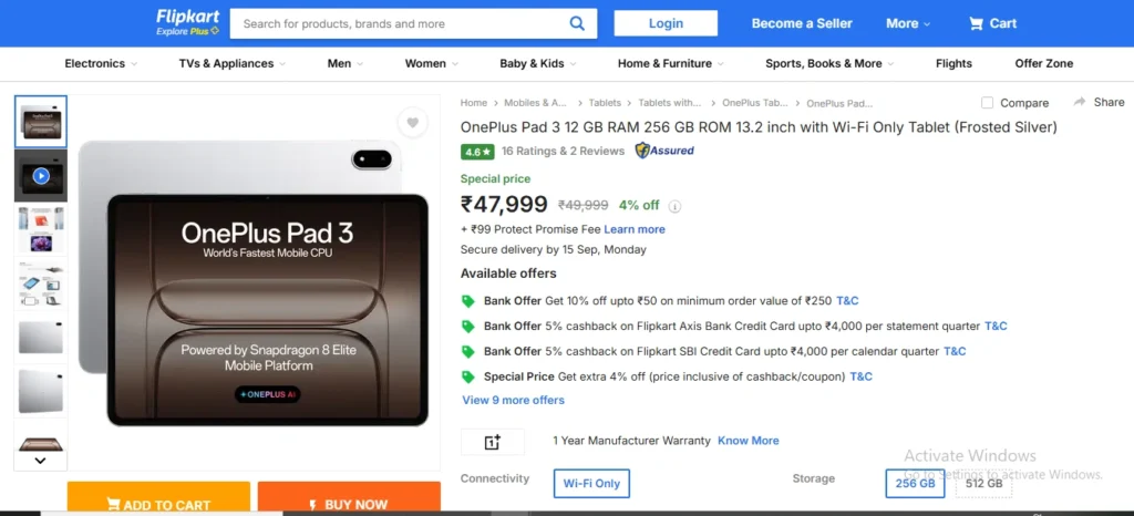 Flipkart Sale में OnePlus Pad 3 हुआ सस्ता