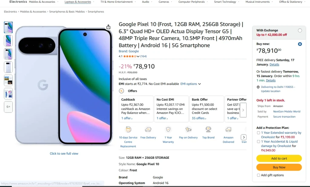 Google Pixel 10 फोन अमेजन सेल पर सस्ते में खरीदें