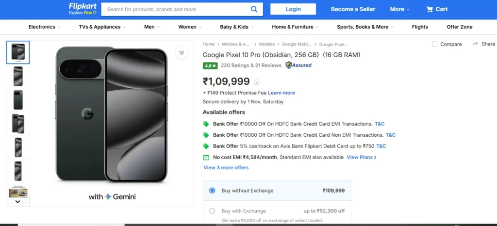 Google Pixel 10 Pro 5G की कीमत और फ्लिपकार्ट सेल ऑफर