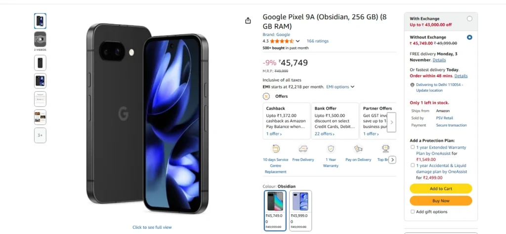 Google Pixel 9A की कीमत और अमेजन सेल ऑफर