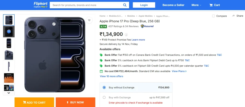 256 GB स्टोरेज वाले iPhone 17 Pro की कीमत और फ्लिपकार्ट ऑफर