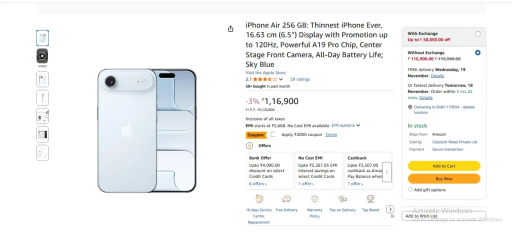 iPhone Air की कीमत और अमेजन डील
