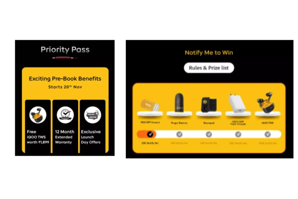 कंपनी ने बताया है कि आईक्यूओओ 15 5जी मोबाइल को 26 नवंबर 2025 को लॉन्च किया जाएगा। मगर इसकी प्री-बुकिंग 20 नवंबर से ही शुरू हो रही है। ऐसे में कंपनी कई लाभ दे रही है। इस ऑफर के तहत कंपनी मुफ्त टीडब्ल्यूएस, 12 महीने की एक्सटेंडेड वारंटी और एक्सक्ल्यूसिव लॉन्च डे ऑफर भी प्रदान कर रही है। हालांकि, इसके लिए ग्राहकों को कुछ नियम और शर्तों को पूरा करना होगा।