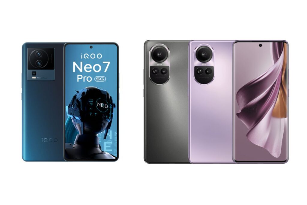 iQOO Neo 7 Pro 5G vs Oppo Reno 10 Pro 5G: देश के स्मार्टफोन बाजार में लगातार नए फोन दस्तक दे रहे हैं। ऐसे में किसी भी नए फोन को खरीदने से पहले कई तरह की परेशानी होती है। अक्सर समझ नहीं आता कि कौन सा फोन बेहतर है या फिर किस मॉडल को खरीदना सही रहेगा। हम इस खबर में दो फोन आईक्यूओओ नियो 7 प्रो 5जी और ओप्पो रेनॉ 10 प्रो 5जी (iQOO Neo 7 Pro 5G vs Oppo Reno 10 Pro 5G) में अंतर कर रहे हैं। इस आर्टिकल से आपको नया फोन लेने में कुछ मदद मिल सकती है। जानें दोनों फोन में अंतर।
