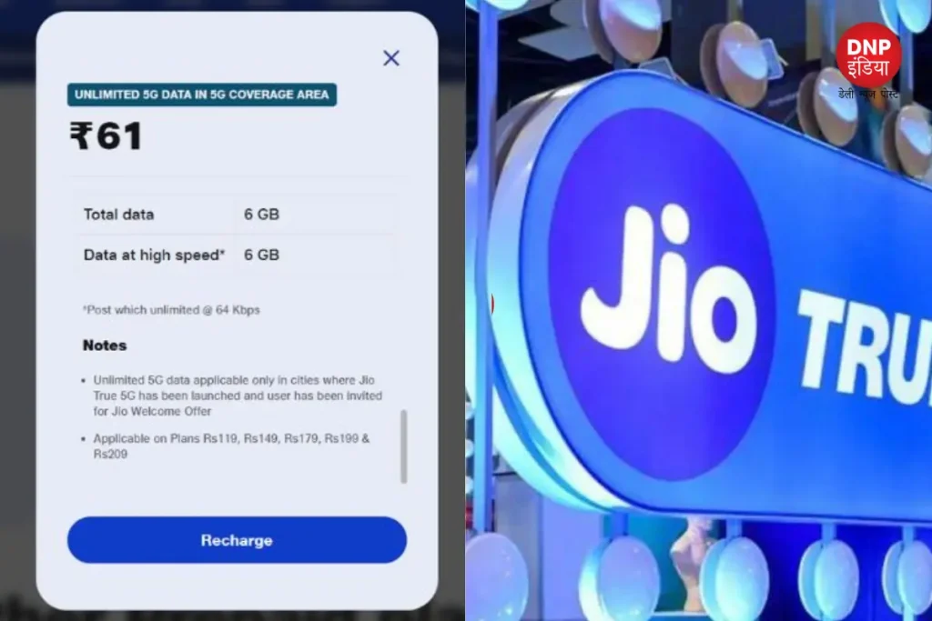 Jio 5G 61 Rs Plan: आज ही 61 रुपए का कराएं ये रिचार्ज और पाएं अनलिमिटेड हाई स्पीड डाटा, ऐसे उठाएं लाभ