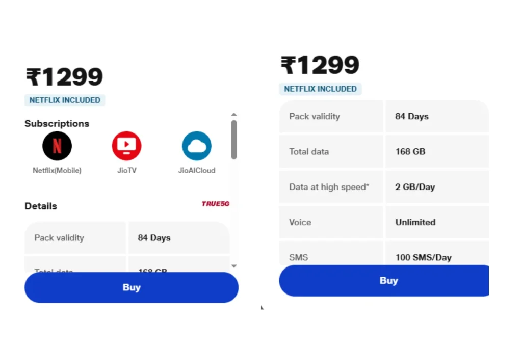 वहीं, स्मार्टफोन में इंटरनेट होने के बाद भी अगर कोई OTT का सब्सक्रिप्शन न हो, तो क्या फायदा है। ऐसे में जियो इस रिचार्ज पैक में अपने ग्राहकों को आलीशान और धांसू OTT सब्सक्रिप्शन प्रदान करती है। इस प्लान में एक नहीं, बल्कि कई OTT का फायदा दिया जाता है। कंपनी के मुताबिक, जियो रिचार्ज प्लान में Netflix (Mobile) का OTT सब्सक्रिप्शन मुफ्त मिलता है। ऐसे में यूजर्स बिना किसी टेंशन के अपने मोबाइल पर Netflix के जरिए भरपूर एंटरटेनमेंट का लुत्फ उठा सकते हैं। साथ ही JioTV और JioAICloud की भी सुविधा दी जाती है।