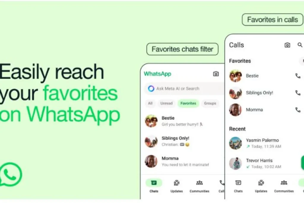 इस फीचर के जरिए यूजर्स अपने प्रियजनों के मैसेज और कॉल को वाट्सऐप चैट पर ऊपर रख सकते हैं। इसके साथ ही उनके मैसेज को फ्लिटर भी कर सकते हैं। इस फीचर के आने से बार-बार फोन से अपने पसंदीद नंबरों को स्क्रॉल करने की जरुरत नहीं पड़ेगी।