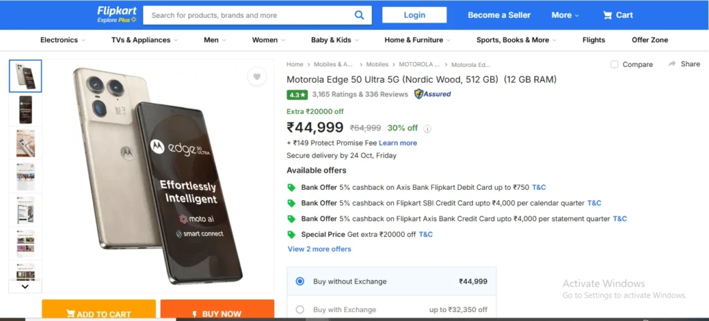 मोटरोला एज 50 अल्ट्रा 5जी स्मार्टफोन की कीमत और को फ्लिपकार्ट सेल ऑफर