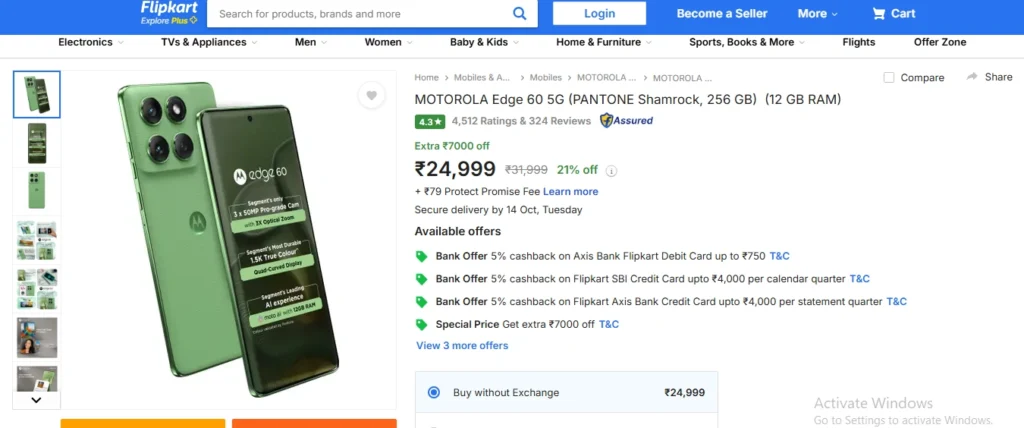 फ्लिपकार्ट बिग बैंग दिवाली सेल से MOTOROLA Edge 60 5G फोन 4800 रुपए में कैसे खरीदें?