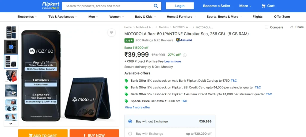 मोटोरोला रेजर 60 5जी फ्लिप स्मार्टफोन को फ्लिपकार्ट सेल से कैसे खरीदें?