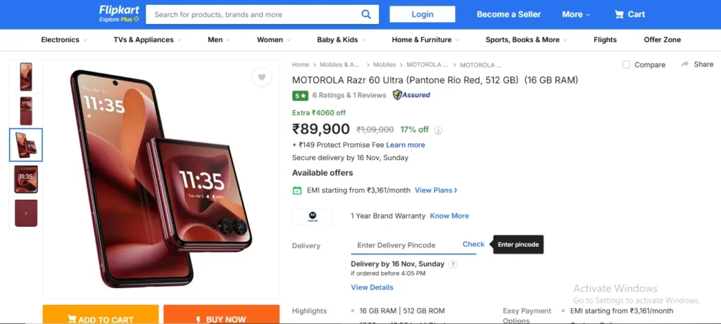 Motorola Razr 60 Ultra फोल्डेबल फोन की कीमत और फ्लिपकार्ट ऑफर