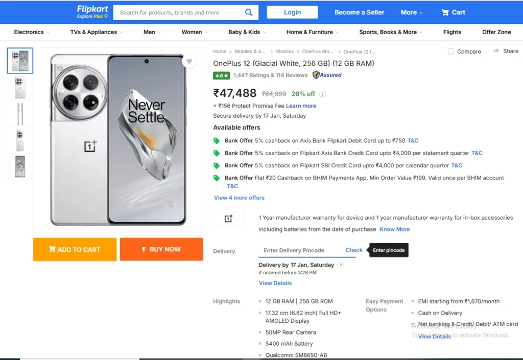 OnePlus 12 5G फोन को फ्लिपकार्ट सेल से सस्ते में खरीदें