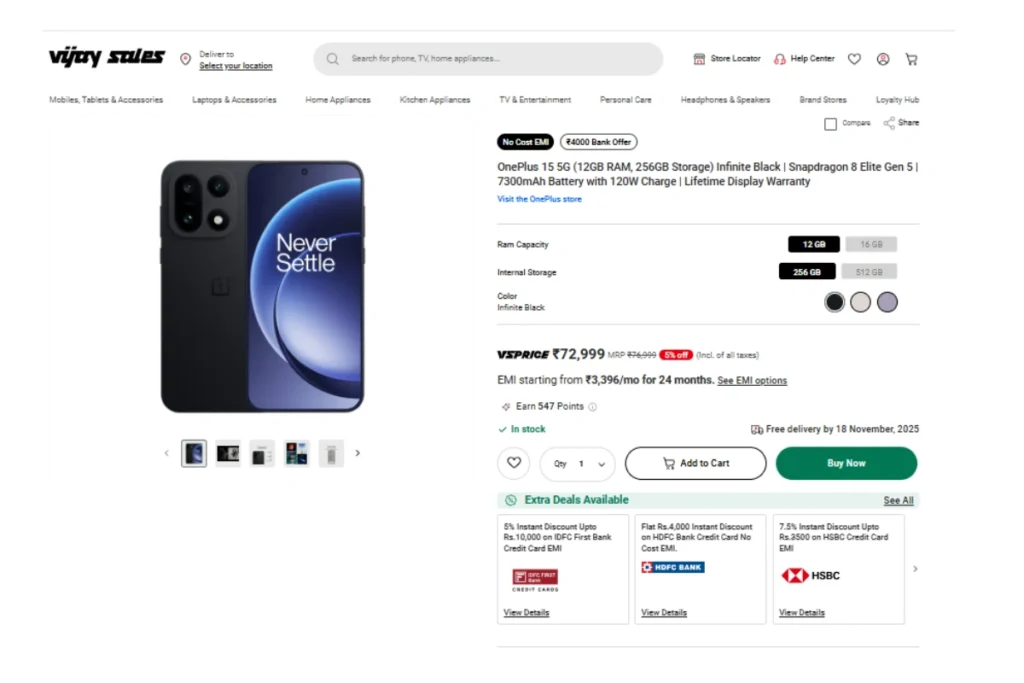 विजय सेल्स पर कितनी है वनप्लस 15 5जी की कीमत