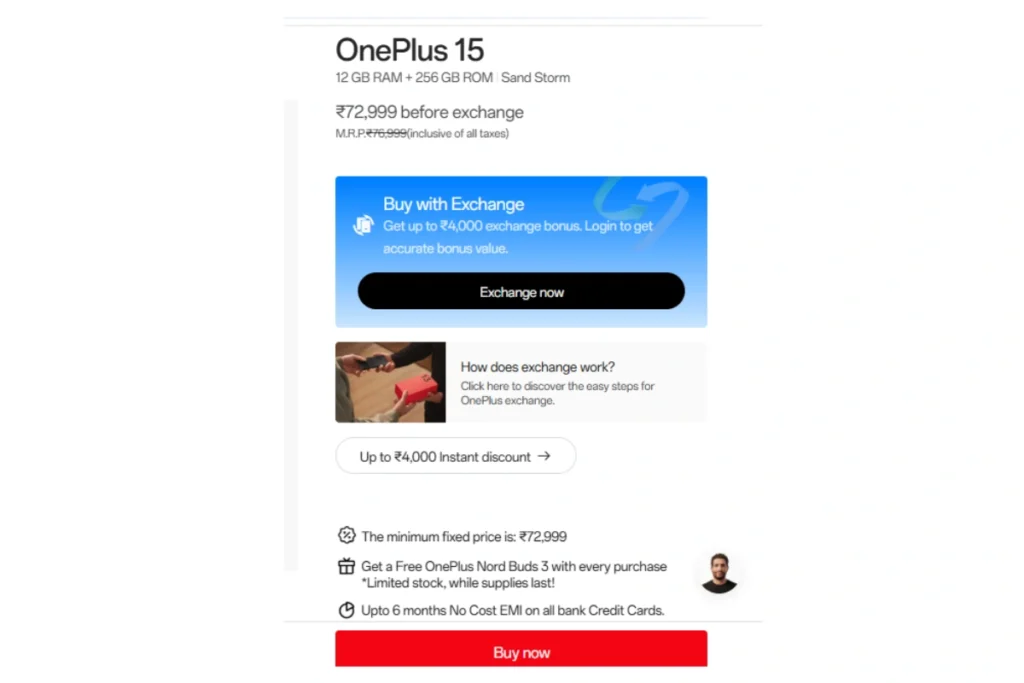 कंपनी ने अपनी आधिकारिक साइट पर बताया है कि वनप्लस 15 5जी का दाम 72999 रुपये तय किया है। यह दाम 12GB रैम और 256GB की इंटरनल स्टोरेज वेरिएंट के लिए रखा गया है। वहीं, 16GB रैम और 512GB इंटरनल स्टोरेज वेरिएंट के लिए 79999 रुपये निर्धारित किया गया है। इस फोन पर कंपनी 4000 रुपये तक का इंस्टेंट डिस्काउंट दिया जा रहा है। हालांकि, इसके लिए कंपनी की कुछ शर्तों को पूरा करना होगा।
