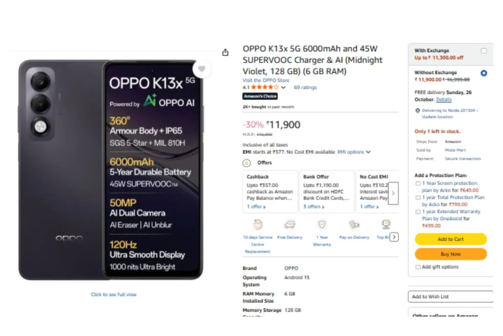 फेस्टिव सेल में घट गया ओप्पो के13एक्स 5जी का प्राइस