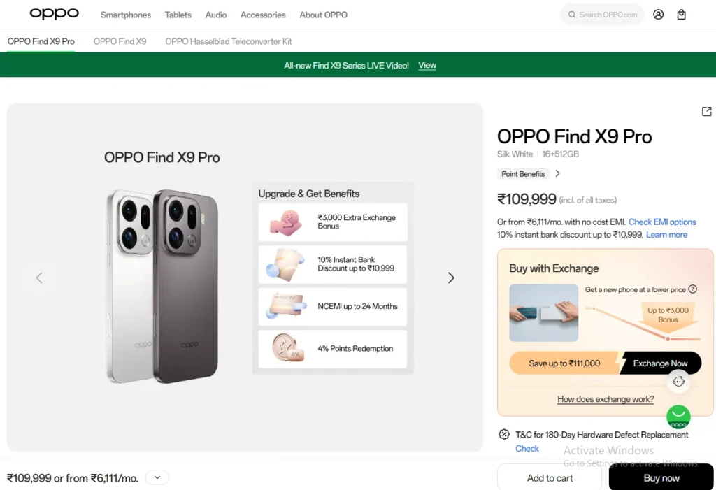 OPPO Find X9 Pro को 10999 रुपए की छूट पर खरीदें