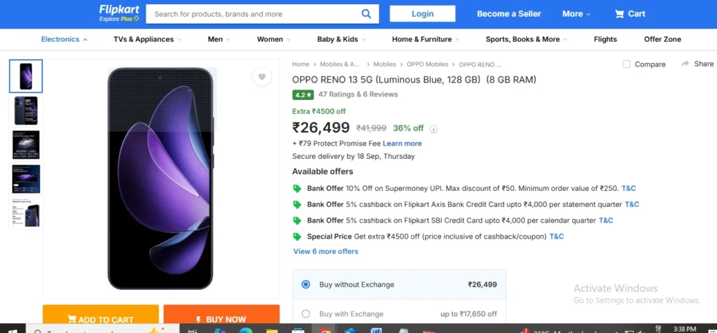 Flipkart Sale में OPPO RENO 13 5G फोन की कीमतों में आयी गिरावट