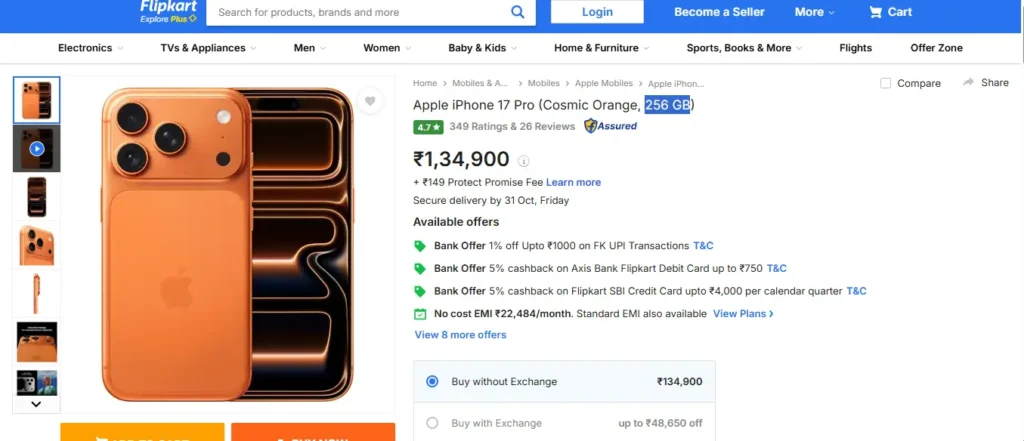 iPhone 17 Pro की कीमत और फ्लिपकार्ट सेल का डिस्काउंट