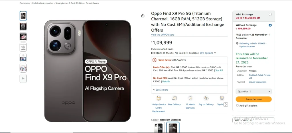 OPPO Find X9 Pro 5G की कीमत और अमेजन सेल ऑफर