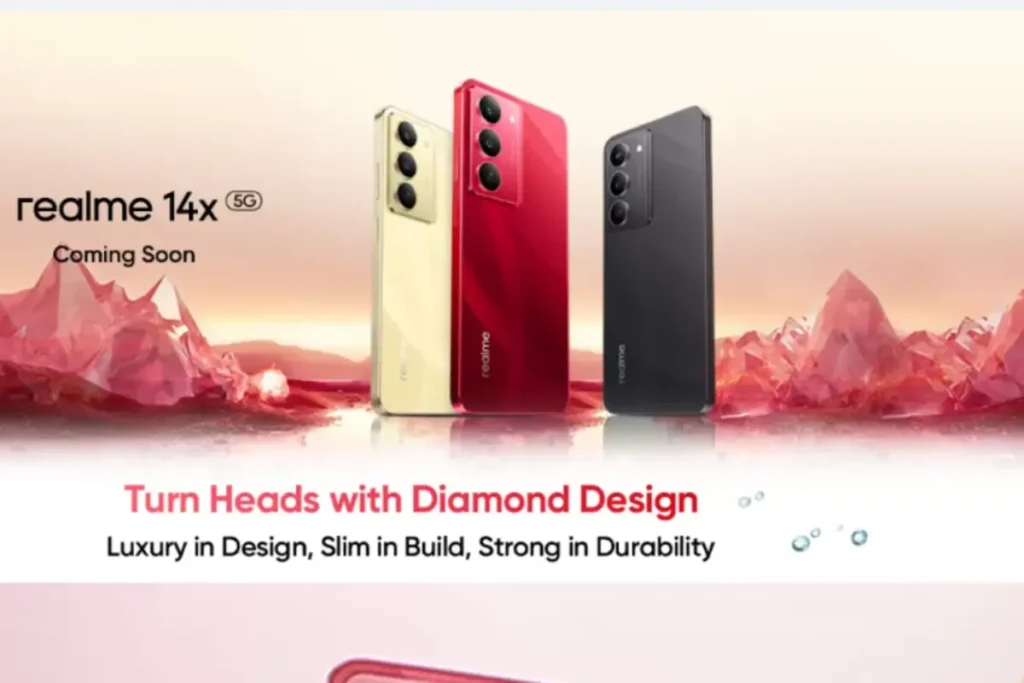 Realme 14x 5G : रियलमी मोबाइल कंपनी बहुत भारत में अपना Realme 14x 5G फोन लॉन्च करने जा रही है। इस फोन के फीचर्स और कीमत का खुलासा तो नहीं हुआ है। लेकिन अफवाहों की मानें तो ये फोन 15000 के आस-पास की कीमत में पेश किया जा सकता है। ऑन लाइन शॉपिंग कंपनी Flipkart ने फोन के लुक को रिवील कर दिया। इससे अंदाजा लगाया जा सकता है कि, ये फोन काफी स्लिम रहने वाला है। इसका डायमंड लुक लोगों को काफी आकर्षित कर रहा है। इस फोन को 18 दिसंबर को लॉन्च किया जा सकता है।