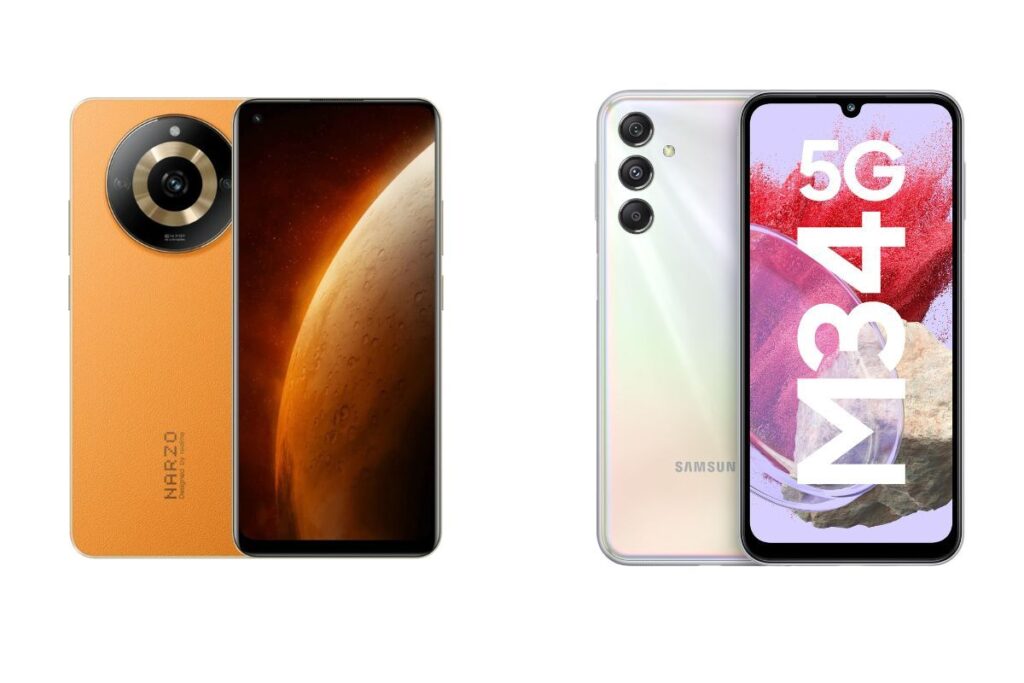Realme Narzo 60 5G vs Samsung Galaxy M34 5G: भारतीय स्मार्टफोन मार्केट में इतने सारे नए मॉडल और उनके वेरिएंट आते हैं कि अक्सर लोग नया फोन लेते वक्त कंफ्यूज हो जाते हैं। इस फेस्टिव सीजन में अगर आप ब्रांड न्यू मोबाइल लेने की सोच रहे हैं तो ये खबर आपके लिए फायदेमंद साबित हो सकती है। हम इस आर्टिकल में दो धांसू स्मार्टफोन रियलमी नार्जो 60 5जी और सैमसंग गैलेक्सी एम34 5जी (Realme Narzo 60 5G vs Samsung Galaxy M34 5G) में अंतर करेंगे। इससे आपको नया फोन लेने में आसानी हो सकती है।