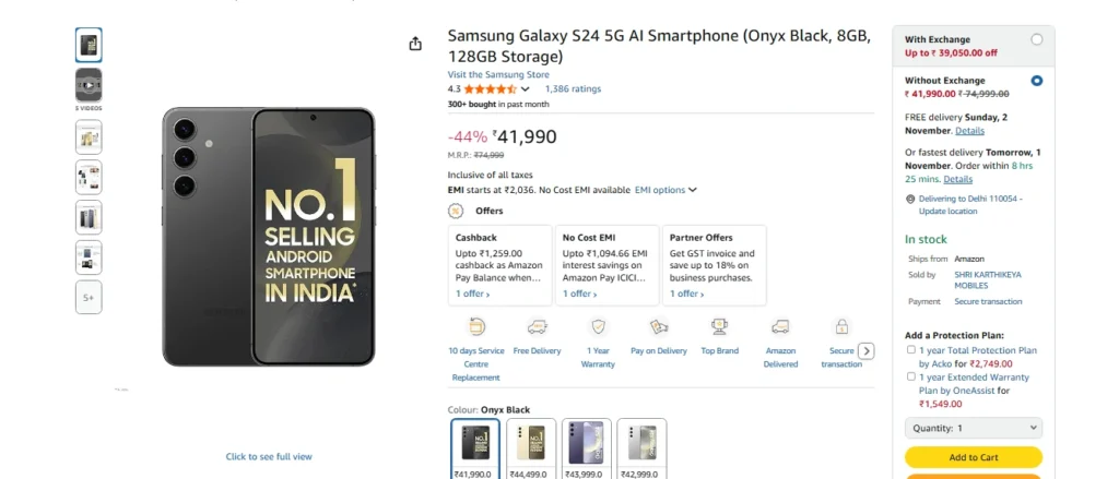 Samsung Galaxy S24 5G की कीमत और अमेजन सेल ऑफर