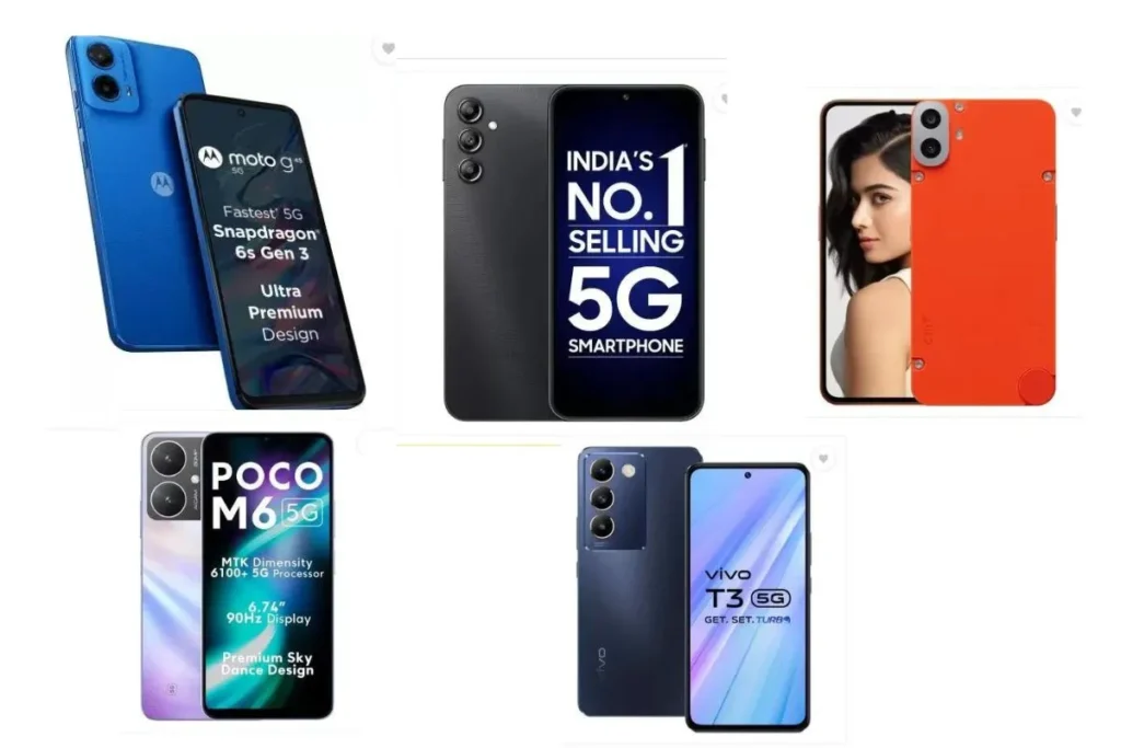 अगर आपका प्लान सस्ते और अच्छे फोन को खरीदने का है तो 20 हजार से कम की कीमत में आप Motorola g45 5G, POCO M6 5G , vivo T3 5G, SAMSUNG Galaxy A14 5G और CMF by Nothing Phone 1 सहित इन पांचों फोन को बुक कर सकते हैं। आज हम आपको Big Billion Days Sale में 20 हजार से कम की कीमत पर भारी डिस्काउंट पर मिल रहे 5 Best Smart Phone Under 20000 के बारे में बताने जा रहे हैं।