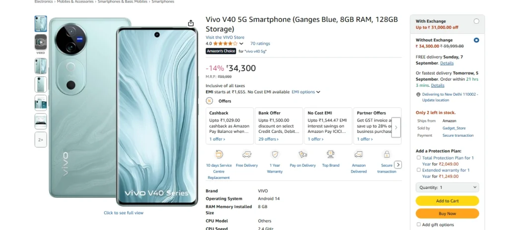 Amazon Sale में सस्ता हुआ Vivo V40 5G Smartphone