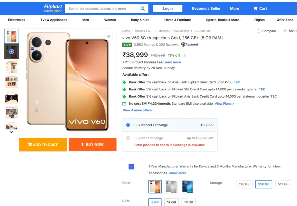 फ्लिपकार्ट सेल में सस्ता हुआ Vivo V60 फोन