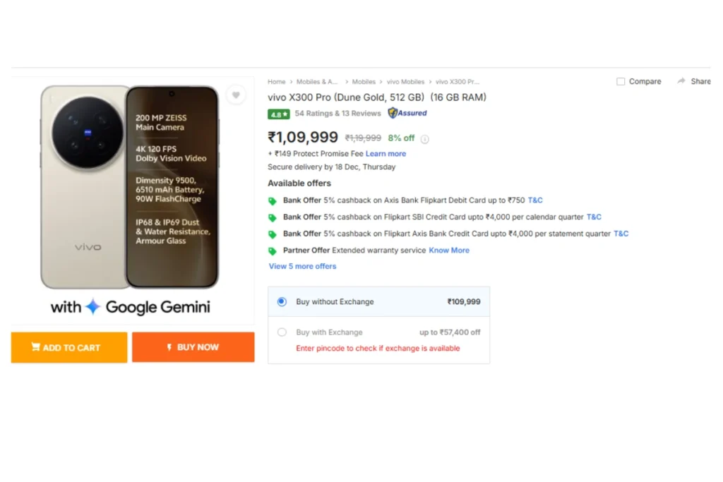 फ्लिपकार्ट एंड ऑफ सीजन सेल में Vivo X300 Pro 5G पर हजारों रुपये का डिस्काउंट