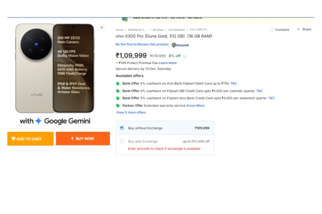 Vivo X300 Pro 5G फोन की पहली सेल में हजारों रुपये की छूट