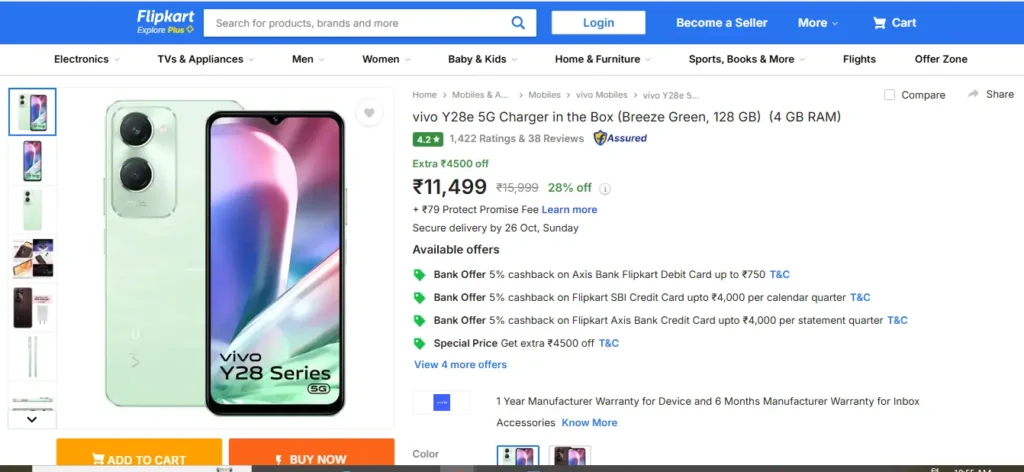 वीवो वाई28 ई 5जी फोन की कीमत और फ्लिपकार्ट सेल डिस्काउंट