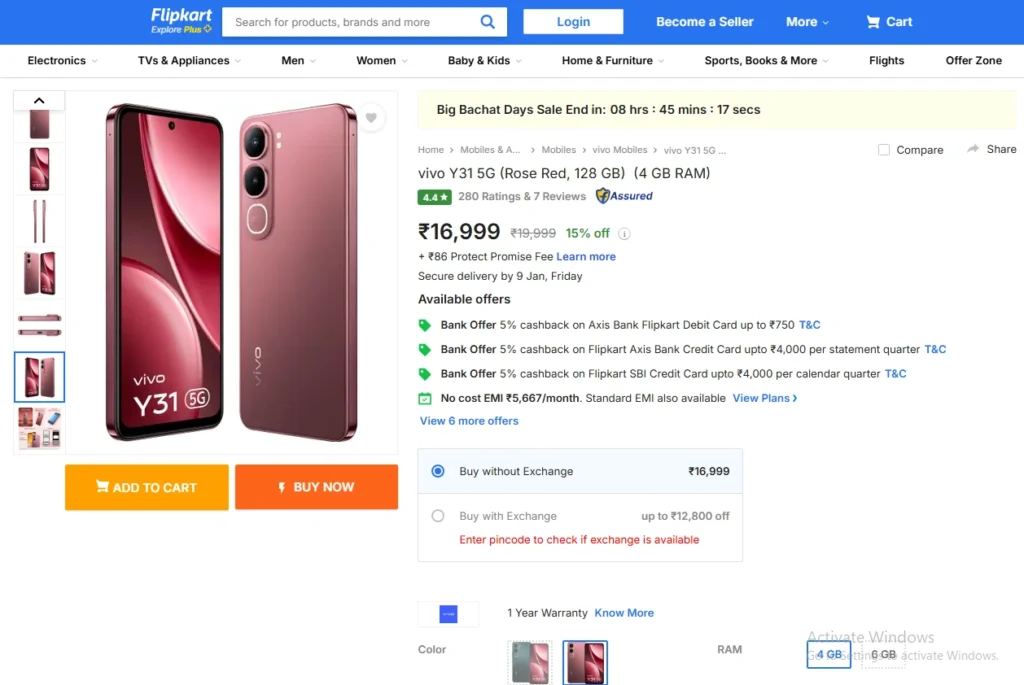 Vivo Y31 5G फोन को फ्लिपकार्ट सेल से सस्ते में खरीदें