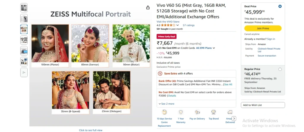 Amazon Great Indian Festival Sale में सस्ता हुआ Vivo V60 5G फोन