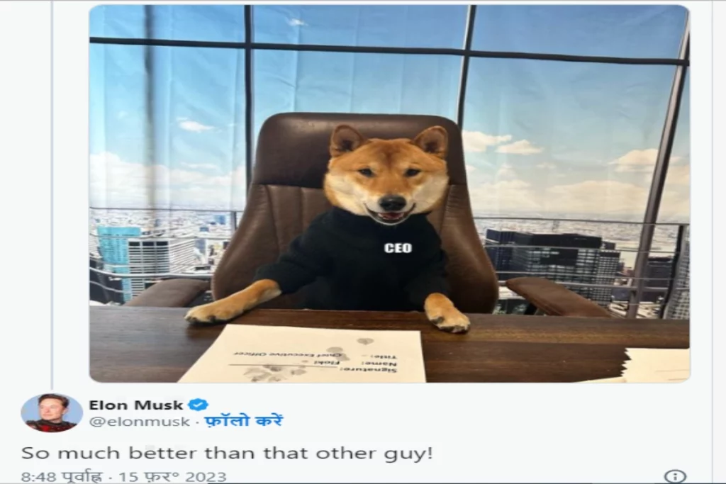 ट्वीटर के मालिक Elon Musk ने अपने कुत्ते की तस्वीर शेयर करते हुए कई ट्वीट भी किये जिसमें उन्होंने लिखा “ट्विटर के नए सीईओ कमाल के हैं” और उन्होंने ट्विटर पूर्व सीईओ पराग अग्रवाल की तरफ इशारा करते हुए दूसरे ट्ट में आगे लिखा कि “उस दूसरे आदमी से बहुत बेहतर”। इसके साथ ही उन्होंने आगे लिखा “ही इस ग्रेट विद नंबर्स”।