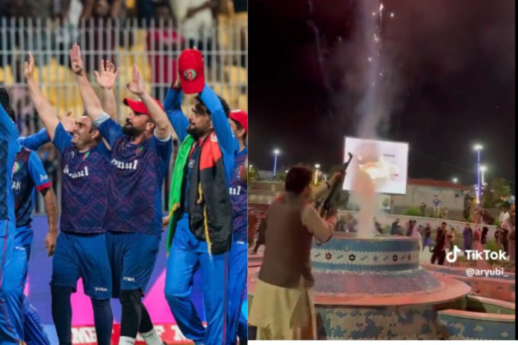 पाकिस्तान को धूल चटाने के बाद अफगानिस्तान में खुशी का माहौल था। ऐसे में अफगानिस्तान के फैंस बेकाबू हो गए. सोशल मीडिया पर एक वीडियो खूब वायरल हो रहा है। इस वीडियो में अफगान फैन पाकिस्तान की हार पर जश्न मनाने के लिए AK47 राइफल फायर करता नजर आ रहा है। अफगानिस्तान की जीत बाद टीम और फैंस बेहद खुश हैं।