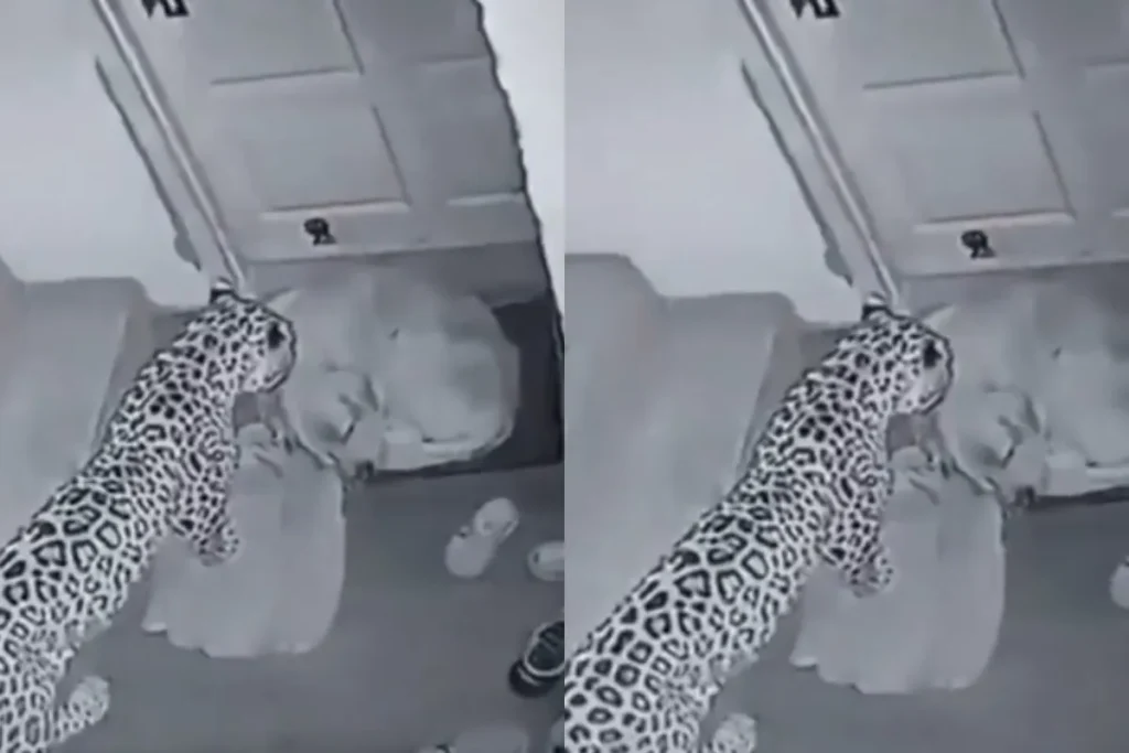 Animal Video: तेंदुआ (Leopard) अपनी तेज रफ्तार और दिमाग के लिए जाना जाता है। पलक झपकते ही ये अपने शिकार को लेकर फरार हो जाता है। यही वजह है कि, इसे देखते ही इंसान हो या फिर कोई अन्य जीव हो भाग जाता है। इंटरनेट पर आए दिन (Leopard viral video) छाए रहते हैं। एक ऐसा ही तेंदुए का (Animal Video) चर्चा में है। इस वीडियो में तेंदुआ कुत्ते को घर के दरवाजे से उठाकर ले जाता है। इतना ही नहीं हमला करने से पहले वह कुत्ते को काफी देर तक निहारता भी रहता है।