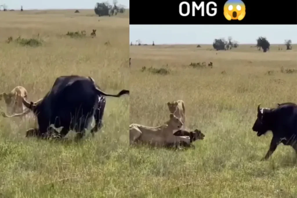 नवजात बच्चे को बचाने के लिए शेरों के झुंड से भिड़ी भैंस