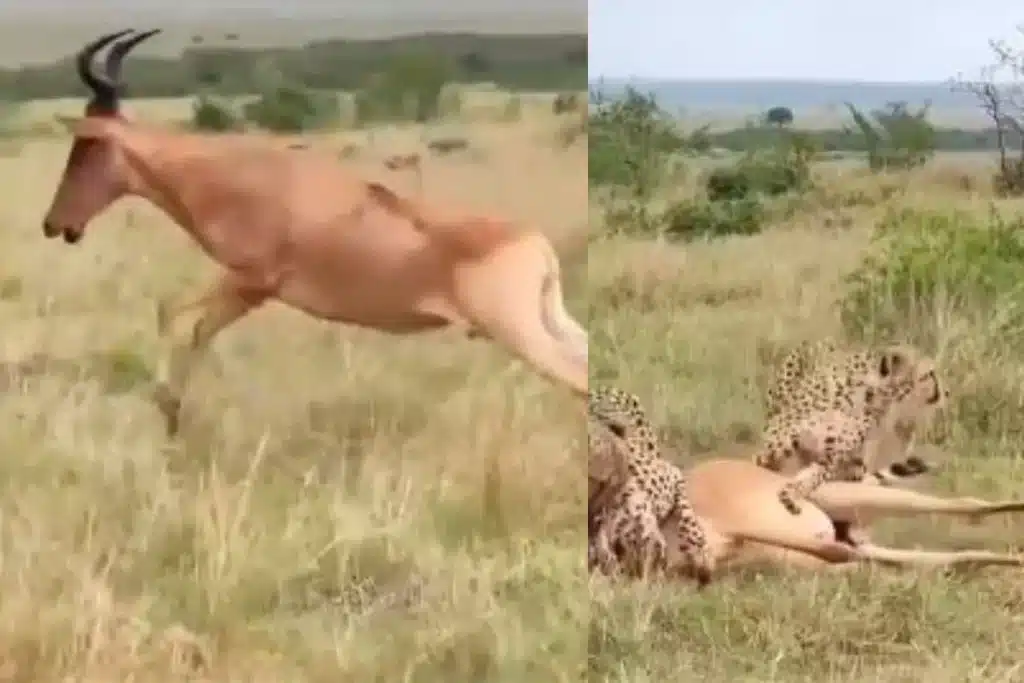 इस इस वायरल वीडियो में आज देख सकते हैं कि, किस तरह कुछ चीतों ने एक हिरण को पकड़ा हुआ है और उसे नोच रहे हैं। ये चीते जैसे ही इस हिरण को निवाला बनाने वाले होते हैं। अचानक से वहां पर मसीहा बनकर एक लकड़बग्घा आ जाता है और चीतों से बिना डरे अकेले टकरा जाता है।