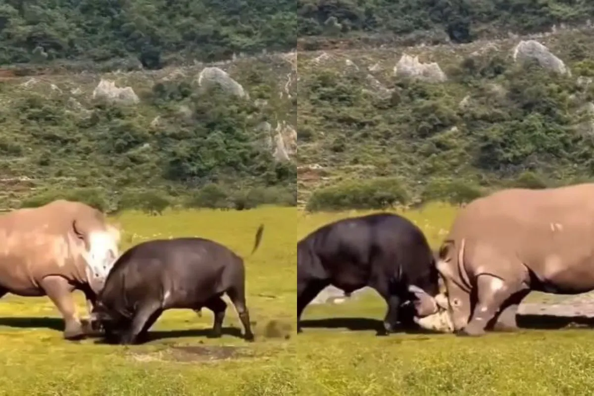 गैंडे ने भैंसे को दिखाए दिन में तारे