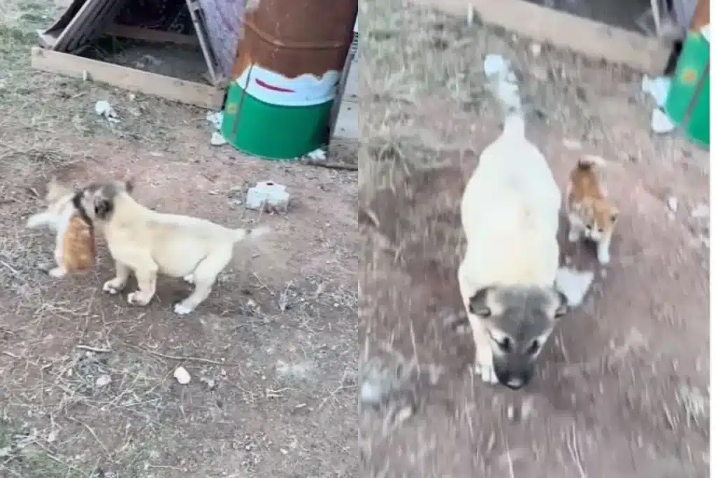 पिल्ले और बिल्ली के बच्चे की दोस्ती का वीडियो वायरल