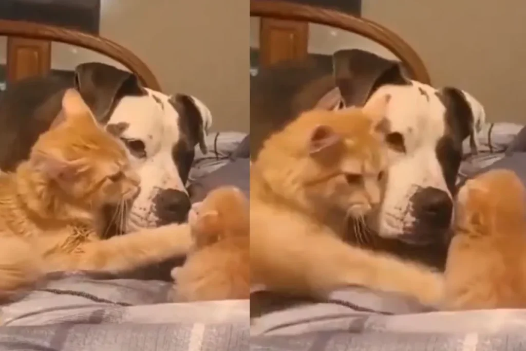 सोशल मीडिया पर वायरल हो रहे इस वीडियो की बात करें तो इसमें आप देख सकते हैं कि एक मम्मी बिल्ली अपने डॉगी दोस्त से बच्चे को मिलवाती हैं। इस दौरान कुत्ते और बिल्ली के बीच की दोस्ती देखने लायक है। मां बिल्ली कुत्ते के साथ प्यार करती हुई नजर आती है और दोनों के बीच दोस्ती देखने लायक है। ऐसा लग रहा है जैसे वे एक साथ काफी क्लोज बॉन्ड शेयर करते हैं। वैसे अगर देखा जाए तो यह कहा जाता है कि कुत्ते से बिल्ली को खतरा होता है लेकिन इसे देखने के बाद आप हैरान रह जाएंगे।