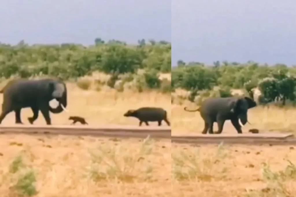 मां को बचाने के लिए हाथी से भीड़ गया भैंस का बच्चा