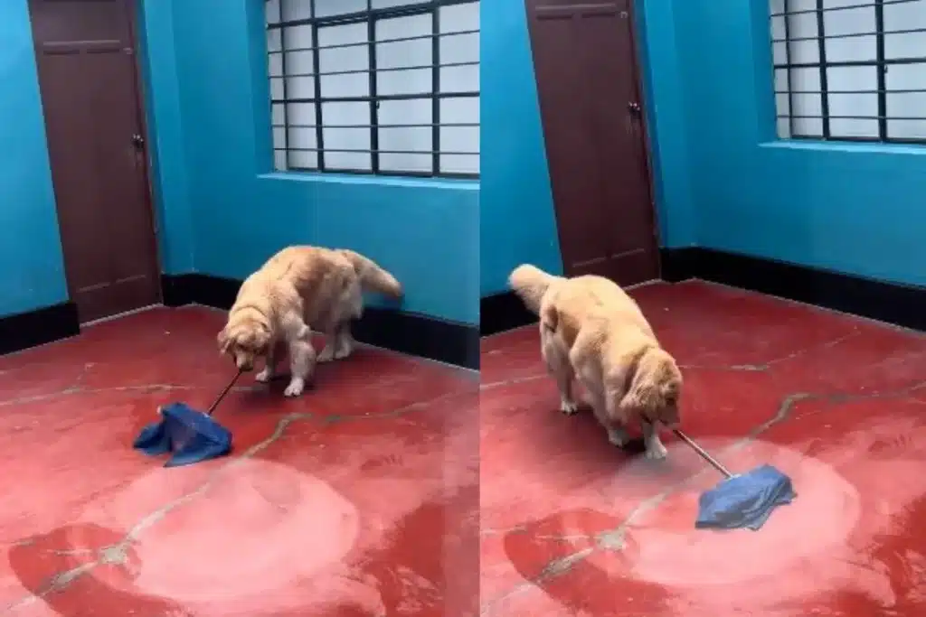 पोछा लगाते क्यूट कुत्ते का Viral Video