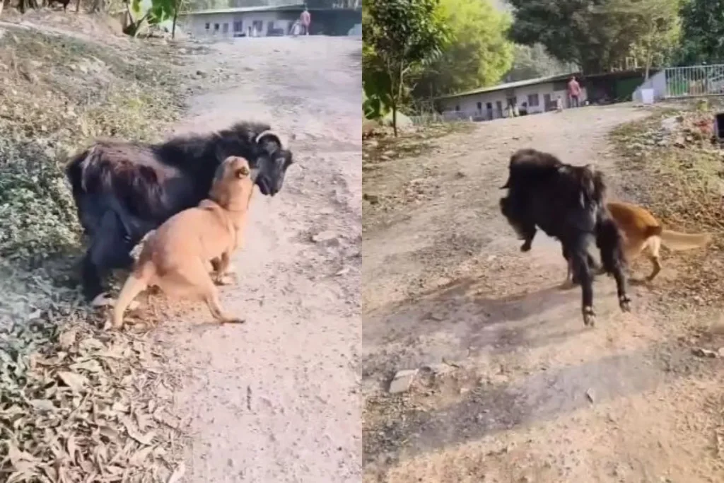 कुत्ते और बकरे की भयंकर लड़ाई