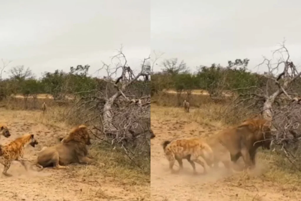 Animal Viral Video में खूंखार शेर से लकरबग्घे का सामना